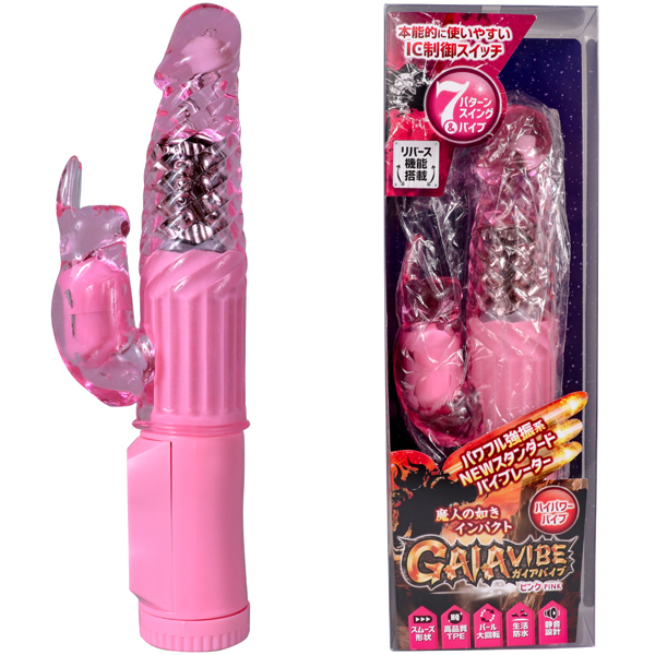 パワフル・丁度良いサイズ感のNEWスタンダードバイブ。使い勝手の良い7パターン振動&スイングをIC制御。挿入し易い先端から波打った刺激が味わえる形状とGス〇ットを責める回転パールギミック搭載。可愛いサブバイブの微細高速振動モーターが外局部をしっかり刺激。肌触りの良い高品質TPE素材に静音設計・生活防水も装備した正に次世代の魔人系バイブ!カラー:ピンク