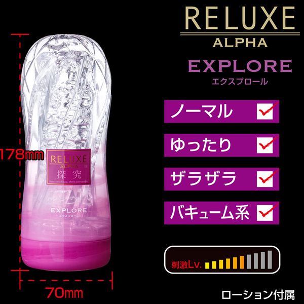 <T-BEST×kuudom.>あの大ヒット商品リラクゼが肉厚・重量UPし登場!透き通るクリアのボディ、見た目の美しさはもちろん、挿入時に自らのものが透けて見える淫靡な効果も期待できます。吸引する中心部を経て、横ヒダからイボへと続く快楽ライン。このエクスプロールは「探求心を刺激する新たな使用感」。ノーマルな硬さにしっかりした吸引力、そこに狭くザラザラした内壁が強めに絡み付いてくる形状です。また肉厚増量で弾圧、バキューム感もUPしています。そしてカップから取り外しての使用も可能、洗浄もできますので何度でも繰り返し使用することが可能です。パッケージカラー:紫