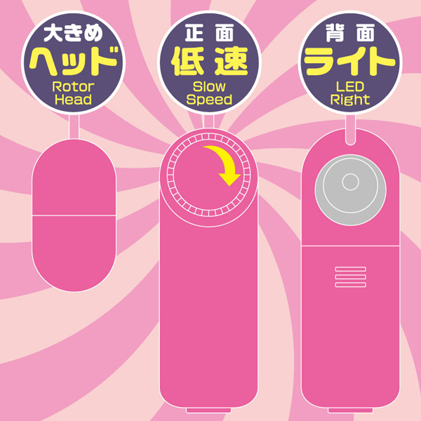 女性が求める刺激がここにある!ゆっくり上り詰めていくような快感が味わえる超低速&微振動の電池式ローター。ダイヤルを回すだけで簡単スピード操作♪焦らすような弱振動から激しい強振動まで自分好みの強さで楽しめる!ヘッド部分は大きめに設計されているので欲しい位置にしっかり当てられます。初めてのアダルトグッズとしても最適です♪背面LEDライト付き、単4電池を2本使用