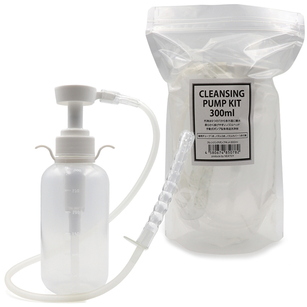 オナホをいつでも清潔に!幅広い用途で使用できる!手動式ポンプ型多用途洗浄器。9つの穴から多方面に噴射!多方面での噴射によって一度の噴射で全体を洗浄することが可能。勢いも分散され安全にやさしく洗浄できます。ノズルは無臭無害の柔らかいPVC素材を採用。やわらかく、しなやかな素材で内部を傷つける事なく安全に使用できます。45cmのチューブが使い勝手抜群。オナホールの洗浄だけでなくプレイ前後の洗浄、注入プレイ等幅広く使用できるマルチポンプキットです。使用後はノズルカバーを装着し清潔に保管できます。
