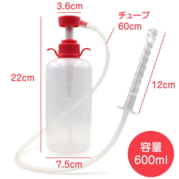 仕様:パッケージ:30.0×15.0×7.0cm 本体:22.0×7.5cm・チューブ60cm・先端12cm・容量600ml