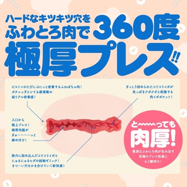 使うほどに成長する革命的素材の「momochi」を使用!ずっしり肉厚な670gの非貫通型オナホ「KITSU−MAN POCHA MAX(キツマン ポチャマックス)」。360度どっしり肉厚仕様の卵型!インナーはキツキツくぁな締めつけ感の実感できる弾力性のあるハード素材を採用。アウターはぽちゃとろな超肉厚ソフト素材で優しく包み込まれる感触を実現♪究極のキツマンを生み出す2層システム。入り口から最深部まで、ピストンの度に密着するふわぽちゃ肉がたまらない!豊満なふわとろ肉による究極のプレス快感で腰砕け間違いなし。パッケージイラストは「ぎうにう」が手掛ける!国産素材&国内生産によるハードなキツキツ穴による極厚プレスをぜひご堪能ください。