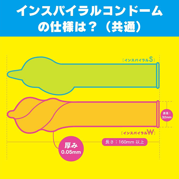 先端部分が幅広となったシングルのスパイラルコンドーム「インスパイラルS」がパッケージリニューアル!違和感なく装着できて、男女ともに気持ちよくなれる新感覚のコンドームです。世界28ヶ国以上での販売実績を誇り、インドのA.V.K.レディング博士によって13年間の研究と分析の結果、人間工学に基づく最初のコンドームとして開発されたインスパイラルコンドーム。従来以上の機能性と他にはない感覚をぜひお楽しみください♪