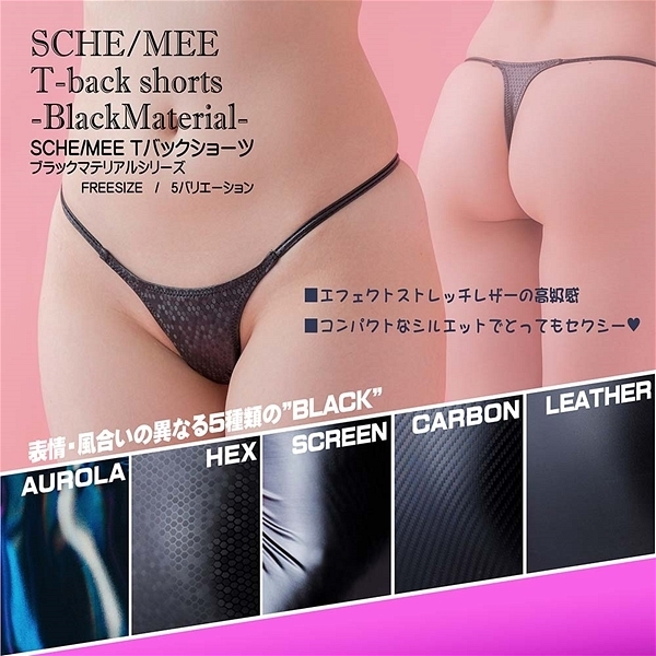 素材感が異なる黒のコーティング素材を使用した2WAYストレッチ生地のTバックショーツです♪レザー独特の上質感とマットな光沢感が特徴となっていて、身体へのフィット感が高く、着心地の良さが特徴です。