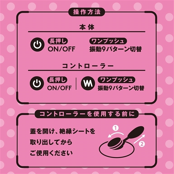 仕様:パッケージ:19.0×13.0×6.0cm 本体:ローター17.5×2.2cm・リモコン6.2×3.7×1.9cm 重量:40g USB充電式