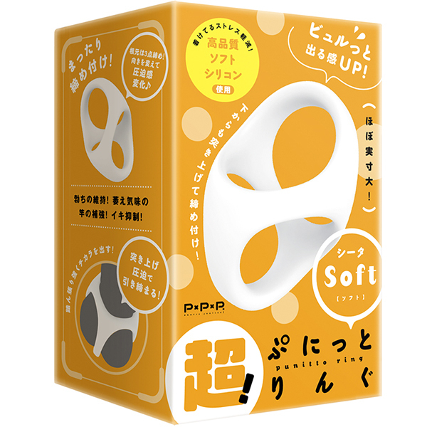 超!ぷにっとりんぐから、根元&タマタマに装着が出来るリングが登場。根元を3点で締め付け!タマタマを下から突き上げるようにまったり締め付けてチカラを出す!サッと装着♪ピタッと密着!装着しやすい伸縮性、臭いのない高品質シリコンで根元をやさしく締め付け、着けてるストレスを軽減!すべすべ装着感で毛の巻き込みを緩和。向きを変えて圧迫感も変化♪ 自分好みの締め付けで勃ちの維持!萎え気味の竿の補強!イキ抑制!ソフトな締めつけでビュルっと出る感UP♪ゆ〜っくり夢心地発射!