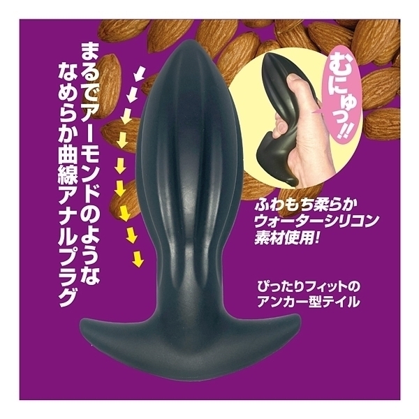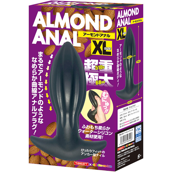 アーモンドフォルム×ウォーターシリコン!形状と素材にこだわった、新感覚ア●ルプラグが新登場!アーモンドナッツのような形状は、先端部に向かってすぼんでいく流線フォルムとなり、スルッとした挿入感を生み出します。さらに、中央部に配置された縦縞状のくぼみが、空気や液体の通り道となり、挿入心地をサポート。最下部は返しの付いた錨モデルで、ヒップラインに沿ったデザインが違和感を低減させます。本体素材には、最先端のウォーターシリコン素材を使用しました。水のように柔らかい、と大評判の人気素材です。すべすべな滑らかさ、もっちりとした肉感弾力、ゴムのように伸びる高伸縮性。あなたにピッタリ寄り添う恍惚素材とスムーズなインサートとなる快感型状で、新しいア●ルプラグです。「XL」は太さ68ミリのマキシマムモデル。