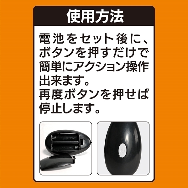 仕様:パッケージ:8.0×8.0×3.0cm 本体:ローター7.0×3.2cm・コントローラー7.8×4.2×2.2cm 重量:50g 電池:単四電池×2本使用