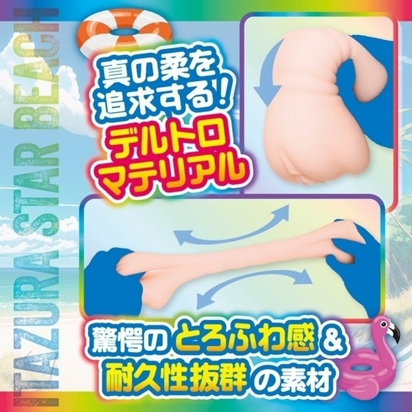 「いたずらスタービーチ」は超やわらか素材で密着感と抵抗感にこだわった「いたずら系生粘膜」を採用した極上のオナホールです。今回のご提案は超ソフト素材でスローオナニーに特化した「デルトロマテリアル」を採用し、「ふわっふわのやわらかいオナホールに包まれる」をコンセプトに完成しました。内部は本物志向の「いたずら系生粘膜」を採用。全方向からまったり絡みつき波のように押し寄せる「昇天ビックウェーブ」を体験できます。本体重量はストロークのしやすい340グラムを採用し、浮き輪のようなグリップで持ちやすく、入口はリアルな造形で臨場感があり、本物に近い感覚を疑似体験できます。真の柔を追求しているYELOLABデルトロシリーズは「素材の配合、油染み、臭い」など試行錯誤を重ね、より良い物を提供できるよう日々、研究しております。極上なソフト素材が好きな方は手に取ってその柔らかさと密着感をゆっくりとお楽しみください。※保管に便利なブリスターケース、YELOLABオリジナルローション付属。根本をおさえて伸ばして楽しむ「スライドオナニー」やねじって楽しむ「スクリューオナニー」などオナホール本体の「形状変化」に取り組んだ「新しいスライドオナニー」をお楽しみください。非貫通オナホール、ソフト素材使用。保管に便利なブリスターケース付き、専用ローション付き。※電マ、ローター等は付属しておりません。別途お買い求めください。