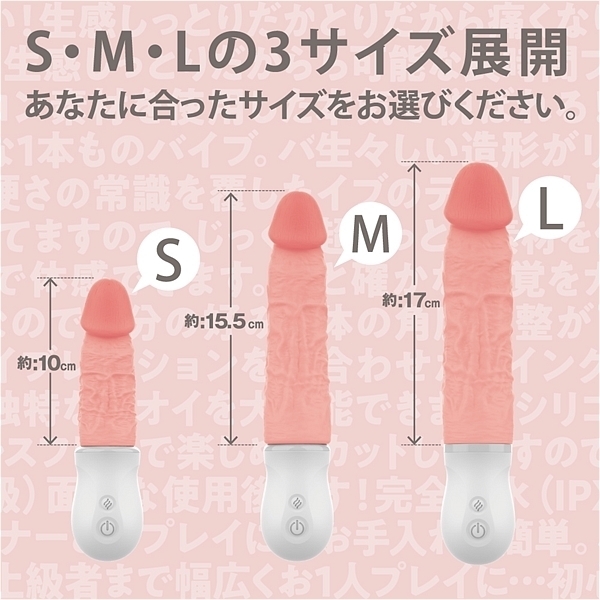 生感しっとりだからズッポリ密着!生感しっとりだから痛くなりにくい!生感しっとりだから可能な長時間プレイ!生感しっとりだから本気で悦ばれる!シリコン素材を使用した生々しい造形がリアルな1本ものバイブ。バイブのデメリットだった硬さの常識を覆した超しっとり素材を使用してますので、じっくりと確かな感覚をカラダで体感できます。本体の角度調整が可能なので自分の好みに合わせたスイング&バイブレーションを堪能できます。シリコンの独特なニオイを大幅カットしてますのでストレスフリーで楽しめます!完全防水(IPX7等級)面倒な使用後のお手入れも簡単。パートナーとのプレイに…1人プレイに…初心者〜上級者まで幅広くお使いいただけるアイテムです。付属品:USBマグネット式充電ケーブル●Mサイズ