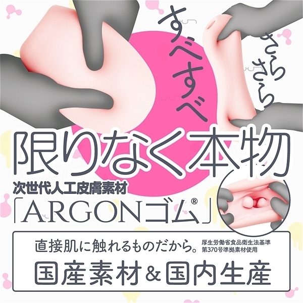 むにゅっととろける生肌感触!ぶりゅんぶりゅんの極大タマイボがとろけ合い絡み合う半熟快感の次世代HOLE!おっぱいを揉みながら挿入しているような不思議な感覚!?外層はいままでの常識が変わる次世代人工皮膚素材『ARGON(アルゴン)』を使用。柔らかいのにベタつかないさらっと人肌再現の新素材です。内層は使うほどに成長する革命的素材『momochiソフト』を使用。使うほどにあなたに馴染んで成長するもっちり人肌感覚の新素材です。2層構造が極上の人肌快感を実現。直接肌に触れるものだから安心の国産素材&国内生産MADE IN JAPAN。パッケージイラスト:なまにくATK