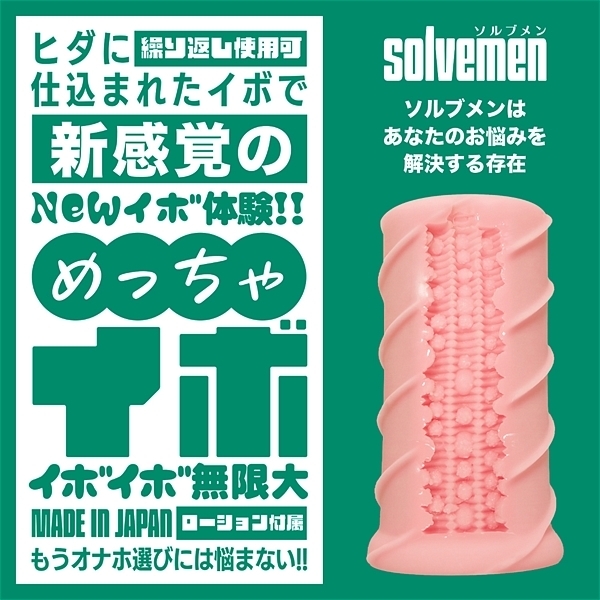 ソルブメンはあなたのお悩みを解決する存在です。「今日はイボで刺激的に」「今日はヒダでやさしく」同じものを使い続けたいときもあれば、1日おきに違うものを使いたいときもある。そんな気まぐれに全力で応えたいです。それがソルブメンの生まれた意味だと思いませんか?今回のテーマは「めっちゃイボ」となります。敢えてイボだけにしなかった意図をお教えしましょう。ヒダのなかに確かな存在感、イボは本当にイボ。それは間違いないのです。しかし敢えてヒダの群れにイボを配置する事でしか生まれない、極上の快感ハーモニーがあることをどうしても感じて欲しかったのです。あなたはオナホ選びに悩む必要はなくなります。あなたのためにソルブメンがいるのです。安心安全の日本製で繰り返し何度でも利用が可能です。