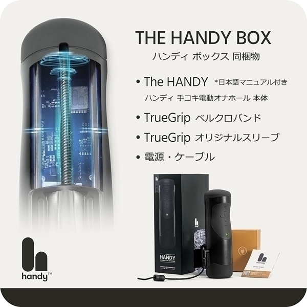 Hany(TheHANDY)(ハンディ)は、手コキを再現した電動オナホールマシーンです。様々なタイプのオナホールを、装着できるのが特徴です。アプリを利用すると、微妙な手コキを再現できます。遠隔操作なども可能となります。本商品は、ジョークグッズの位置づけでご使用ください。
