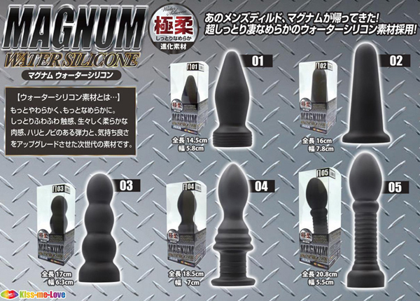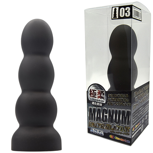 ブラックが冴えわたる本格派ディルドが最新素材になって新登場!極上素材を採用した「マグナム ウォーターシリコン」!黒い欲望を満足させるエキスパートなボディライン。その魅力をそのままに素材をグレードアップしました。シリコンを超える進化素材。超しっとり凄なめらか快感度を追求した進化素材、それがこのウォーターシリコン素材なのです。しっとりきめ細やかな質感に生々しい生体的な肉感弾力、人体や環境にも優しい安心材料。アダルトグッズのステージを高めべく進化したマテリアルです。熟練者向けのマニアな形状に極上の肉々しさをプラスしたゴージャスなディルドです。調教や拡張などのハードコアでエクストリームなプレイにぴったりなシリーズとなりました。「MAGNUM」の名の通りパワーあふれる快感をご体験ください。「03」は、太さ4〜5センチの三段腹型フォルム。三段階で選べる太さの挑発的な気持ちよさ!