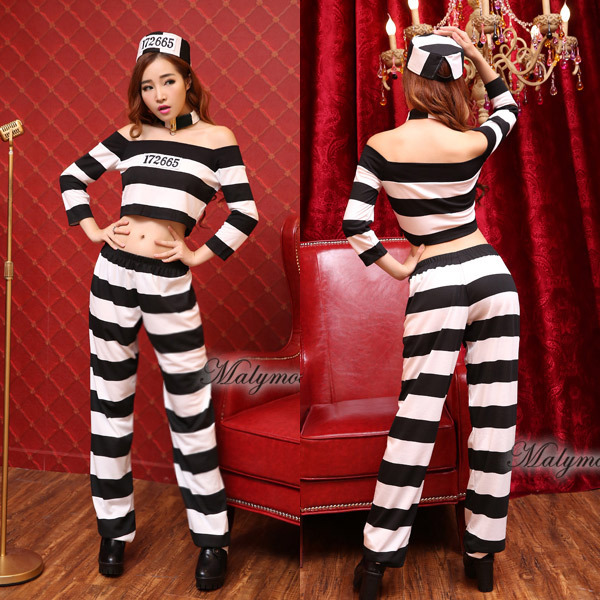 ボーイッシュなパンツタイプの囚人コスチューム。●肩とお腹の露出が魅力的でかっこよく決めたい方におすすめの一枚!※こちらの商品は受注発注商品の為、ご注文から発送までに3、4営業日掛かる場合が御座います。