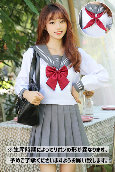 真っ赤なスクールリボンが映える清楚な長袖セーラー服。襟と袖口には3本の白ラインがシャープな印象♪動くたびヒラリと揺れるプリーツスカートで可愛くアピール!グレーカラー、Mサイズ※生産時期によりリボンの形が異なります、予めご了承ください※色落ちの可能性がありますので洗濯の際は単品手洗いでお願いします。※こちらの商品は受注発注商品の為、ご注文から発送までに3、4営業日掛かる場合が御座います。